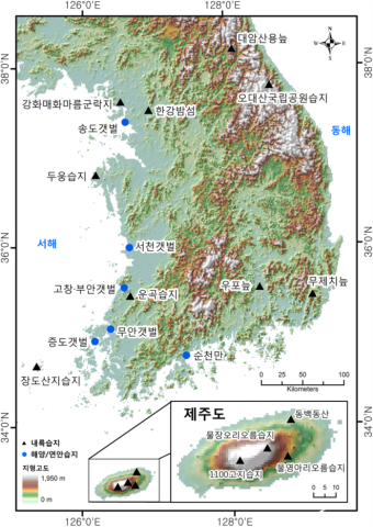 - 강원도 인제군 대암산 용늪, 경남 창녕군 우포늪, 순천만 갯벌, 여의도 밤섬 등 등록